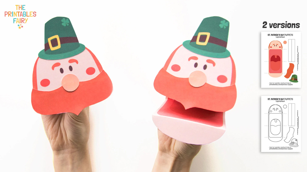 2 PDF files with the Leprechaun Puppet Printable Template.