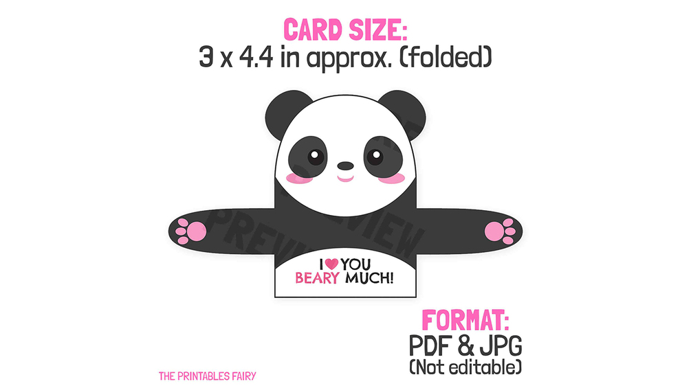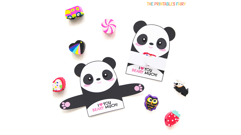 Valentine's Day Printable Panda Bear Candy Hugger for candies, chocolates, or small gifts.