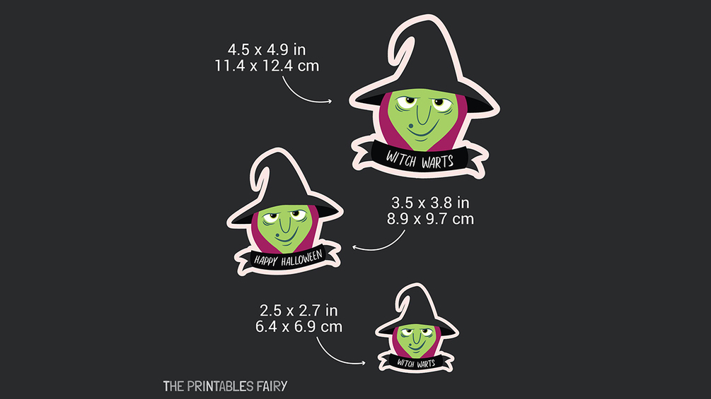 - Tags come in 2 different versions: Happy Halloween & Witch Warts